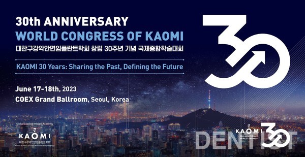 KAOMI 30주년 기념 국제종합학술대회는 대한치과의사협회 보수교육점수 4점이 부여된다. 조기등록은 이달 15일까지이며, 사전등록은 6월 2일까지다.