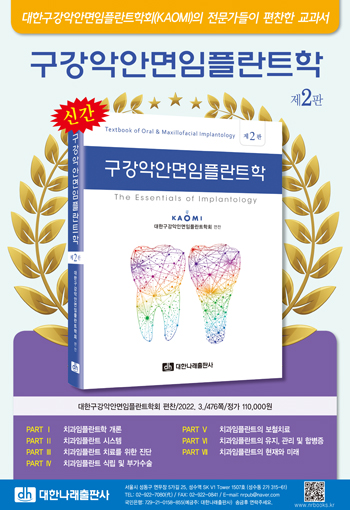 ‘The Essentials of Implantology’를 부제로 삼은 이번 ‘구강악안면임플란트학’ 개정판은 지난 2007년 3권 발간 후 15년 만에 발간됐다. KAOMI는 지난 2004년 치과대학생 및 임상의를 위한 ‘구강악안면임플란트학’ 교과서 1권을 발간했으며, 2006년에 2권을, 이듬해인 지난 2007년 3월 제3권을 발간한 바 있다.