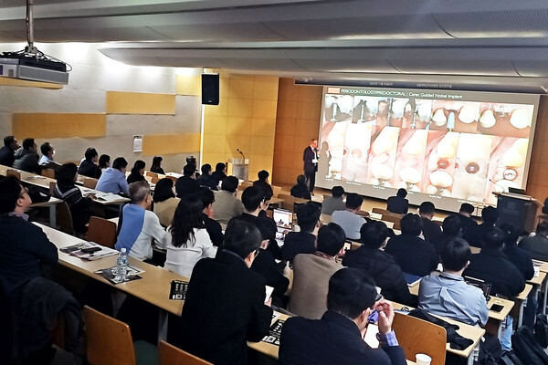 해외 연자인 Boston University의 Serge Dibart 교수는 전통적 정적 가이드(static guide)와 최근 활발히 연구되고 있는 동적 내비게이션 가이드(dynamic navigation guide)에 대해 소개했습니다. 또한 수술 정확도를 높일 수 있는 ‘로봇 유도 임플란트 수술(robotic guided implant surgery)’을 소개해 큰 관심을 받았습니다.